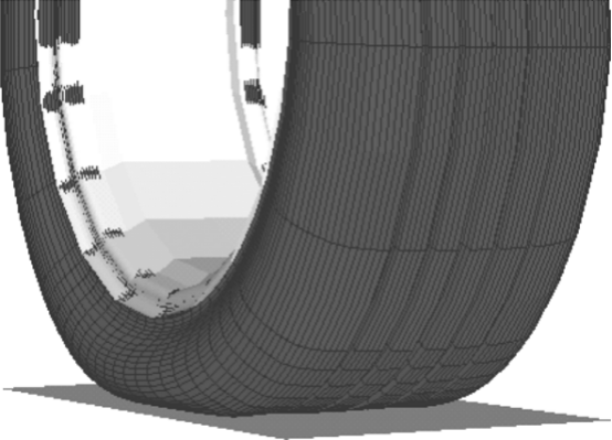 图10轮胎以3度滑移角稳态滚动时胎体变形模拟