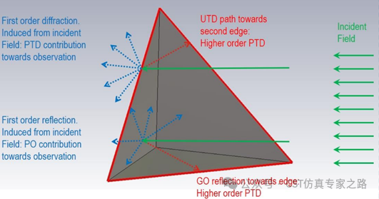 lutd则是考虑衍射射线进一步传播的方法,如衍射-衍射、衍射-反射和反射-衍射。实际的utd 阶数对应于单个射线路径中可能发生的最大衍射次数。
