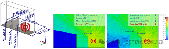 该设置也是需要先勾选include edge diffraction(utd)才可以进行设置。它决定了递归utd的阶数,即可以发生多少次utd衍射。设置的阶数越高,衍射的结果越精确,但是仿真时长也会加大。所以这个数字的设置需要适当。
