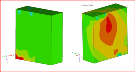 从图5中可以观察到在填缝模拟后的磁体上的应力分布。磁体中的应力取决于工具几何形状、穿透深度以及填缝位置。