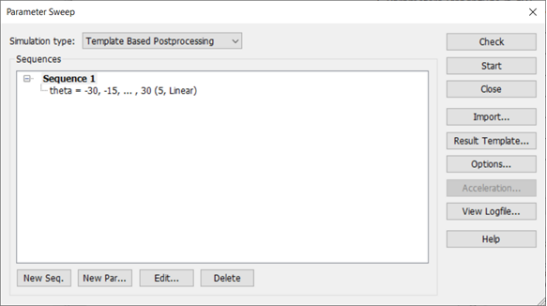 在扫描之前,可以根据天线数字信号的激励信息修改这些参数。这里我们用180*sind(theta)和不同系数来控制端口2,3,4的相位。如果有激励列表,我们也可以支持导入。