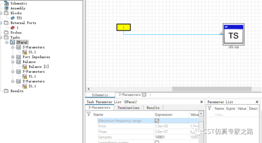 第八步,使用touchstone 导入测试数据文件并建立电路模型。创建s参数task,设置起始频率以及采样点数,z-parameters设置为on。
