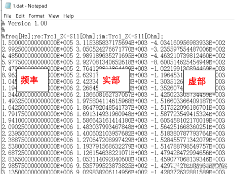 第一步,拿到网分测量的阻抗曲线结果,注意必须用网分,而不能用阻抗测量仪。网分的测量结果可以保存两种不同的数据类型:“幅值 相位”或者“实部 虚部”。